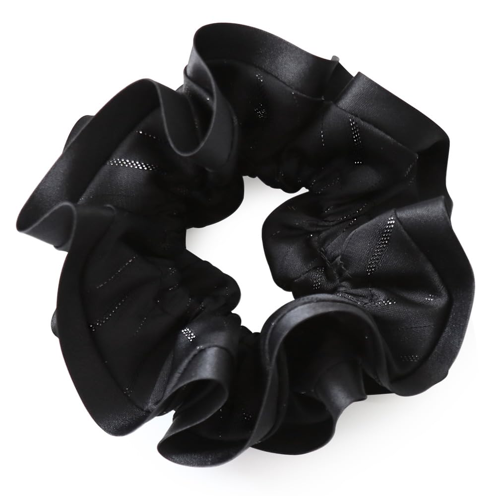 JewelVOX Black Scrunchie Hair Accessory with Grosgrain Frame and Striped Stylish and Cute for Simple and Available in Fabric. Adults. Stylish. Black.