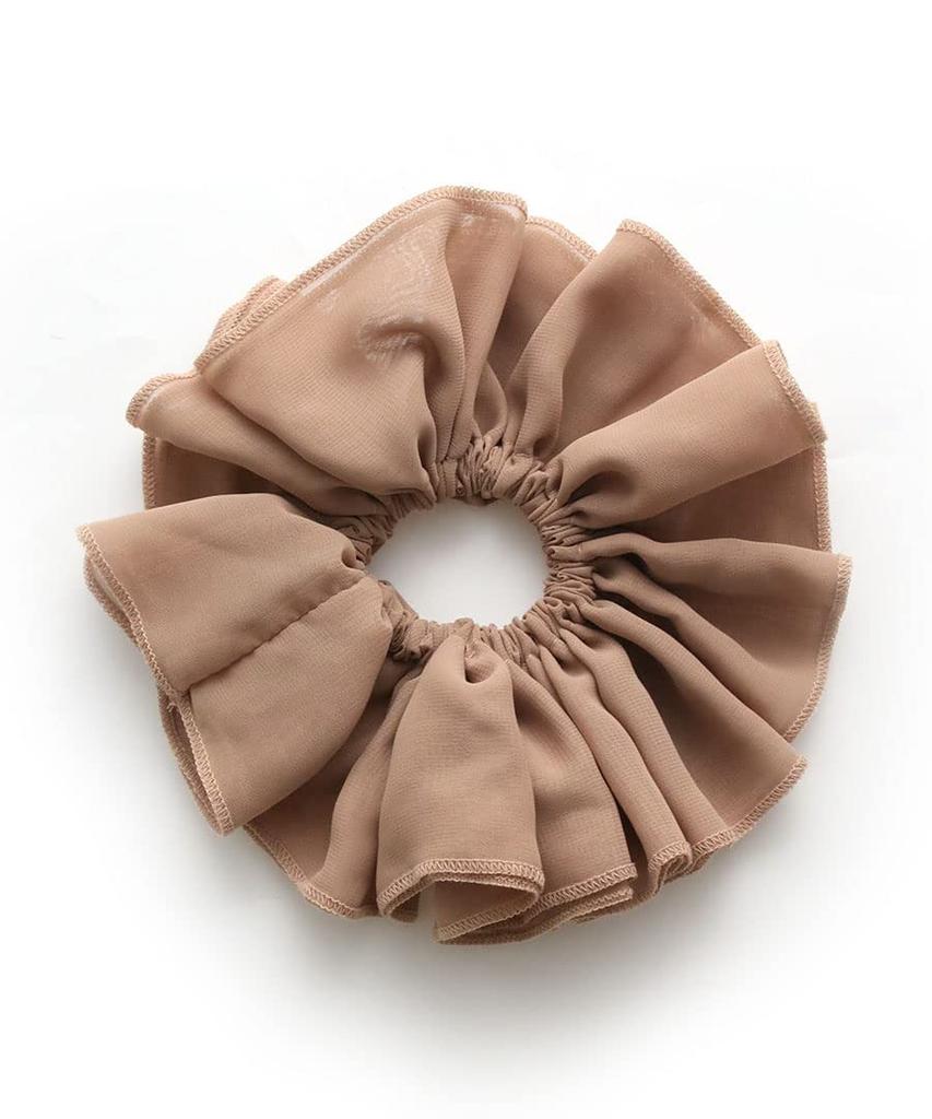 VINGTAINE Ruffled Chiffon Scrunchie Hair Accessory in Muted Simple and Sophisticated for Everyday Use Colors, (HS-160-BEPK)