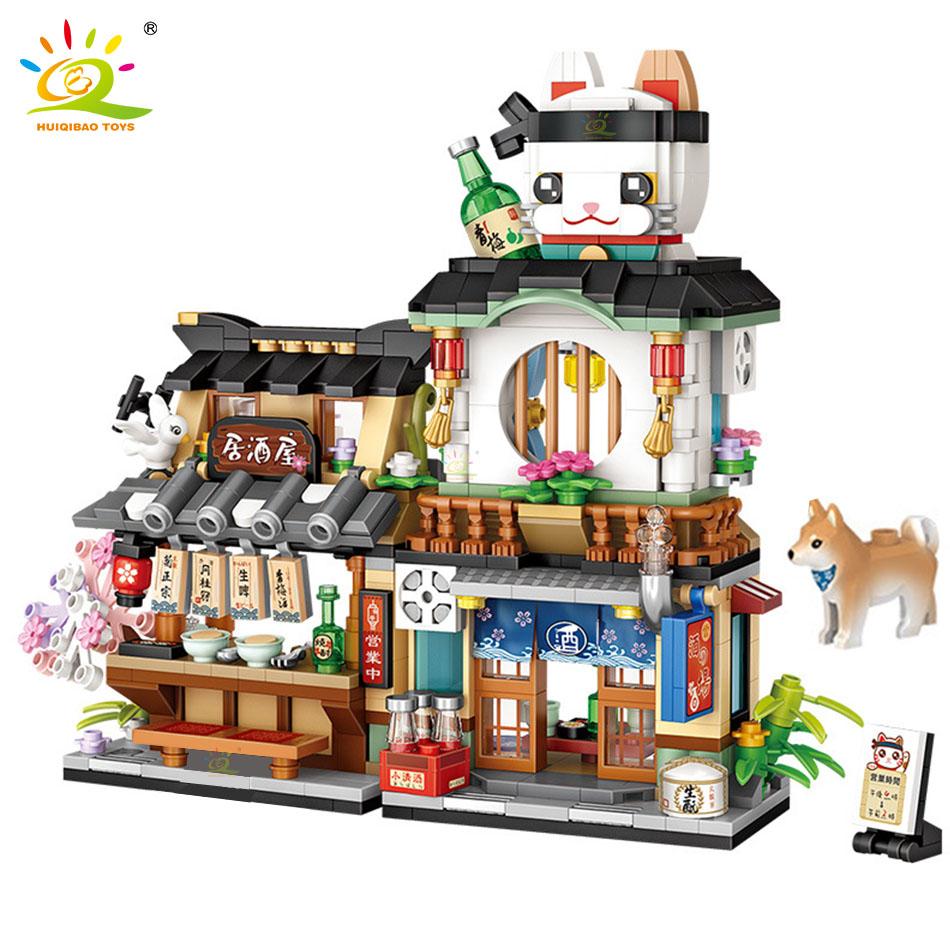 City Mini Chinese Street View Grocery Store Meat Shop Building Blocks Japanese Food Ice Shop Figures Bricks Toys Children Gifts