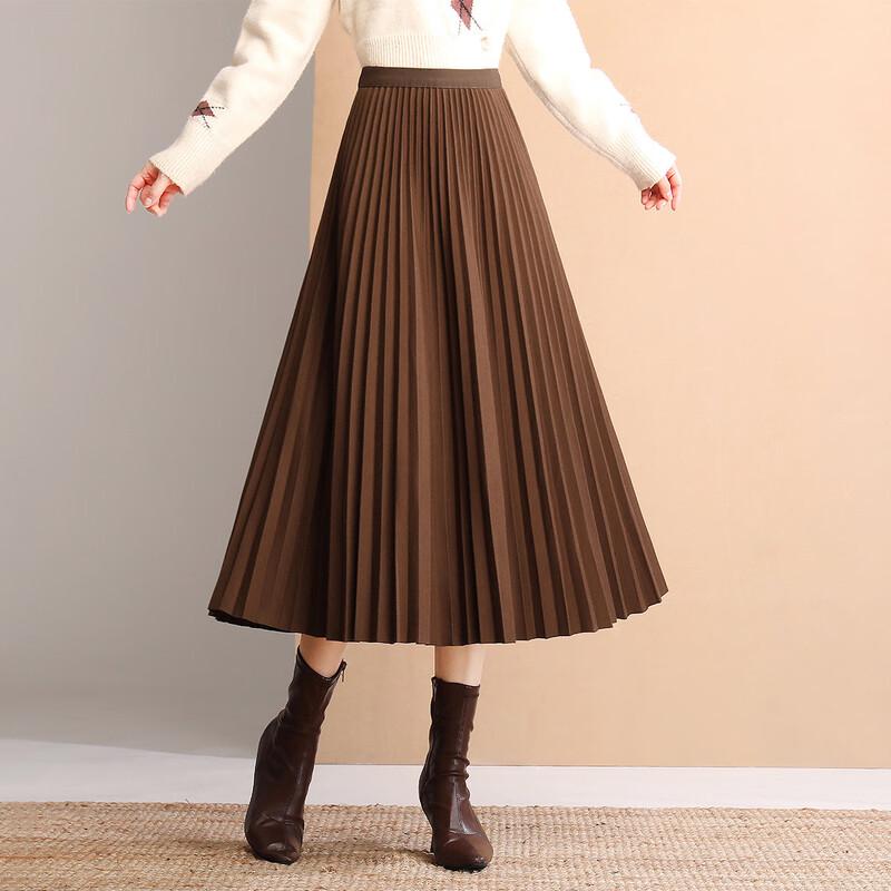 Bailuyu Autumn/Winter High-Waist Pleated Knit Midi Skirt