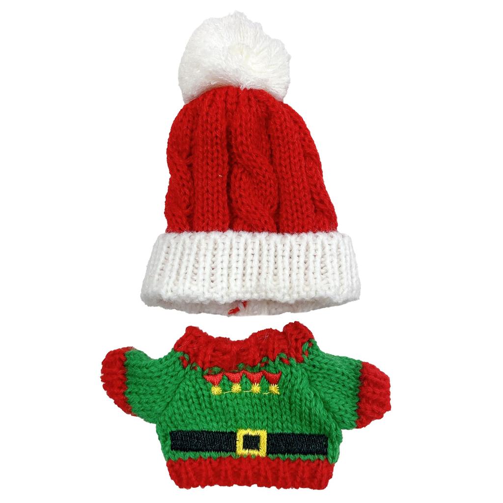 Weihnachtspullover & Strickmützen-Set für 10cm Weihnachtsmann-Plüschtier, Kigurumi, Zubehör, Otaku, Puppe, Maskottchen, Kpoppuppen-Kostüm [Gebraucht]