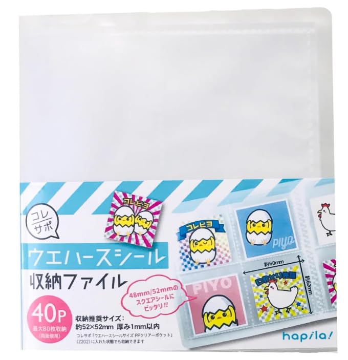This 40-pocket storage file neatly organizes square wafer stickers. It accommodates 48mm and 52mm sticker sizes, and can hold 40 stickers on one side or up to 80 stickers on both sides. Its compact size makes it easy to carry, making it ideal for managing your collection and even for face-to-face exchanges. The body is made of lightweight, easy-to-handle PP material, which protects your stickers from scratches and creases. This practical file is perfect for everyday collection organization and exchanges.