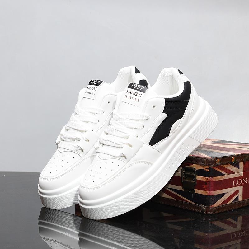 Innenhöhe-erhöhende lässige Board-Schuhe Frühling und Herbst Leder Sportschuhe dicke Sohle Höhe-erhöhend Trendschuhe Paar