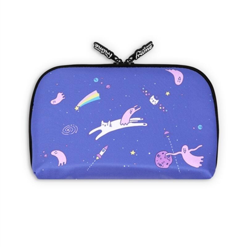 Kosmetiktasche / Katzen- und Mondfliegen-Weltraumreise