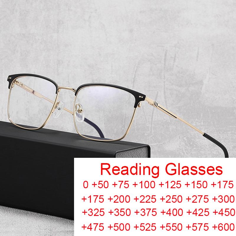 New TR90 Metal Half Frame Anti Blue Light Reading Glasses Fashion Square Semi Rimless Eyewear for Men Computer Goggles