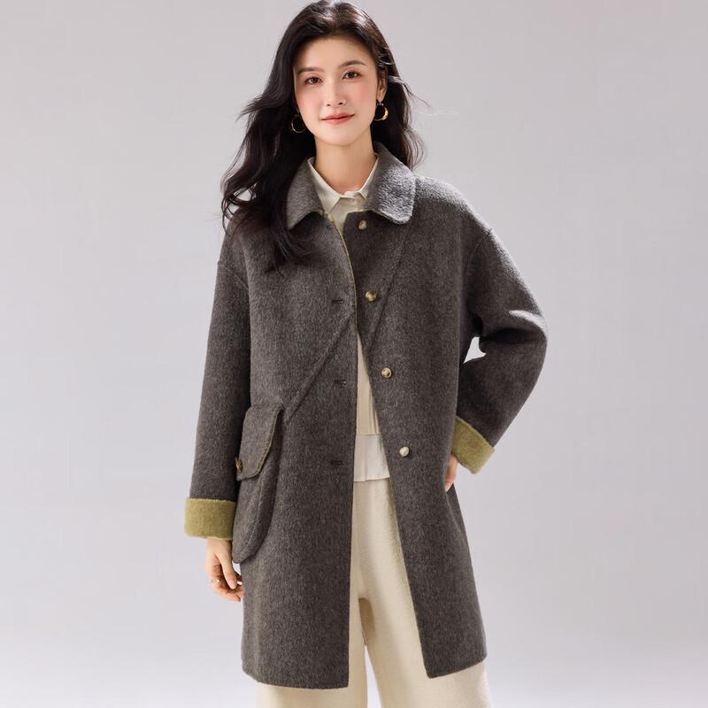 Damen Retro Mid-Length Mantel aus Wollmischung, beidseitig tragbar, 2026