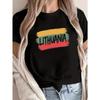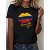 Europäische Größen Damen Lässiges Kurzarm-Rundhals-T-Shirt mit Pinselstrich-Design der kolumbianischen Flagge, Perfekt für Frühling und Sommer