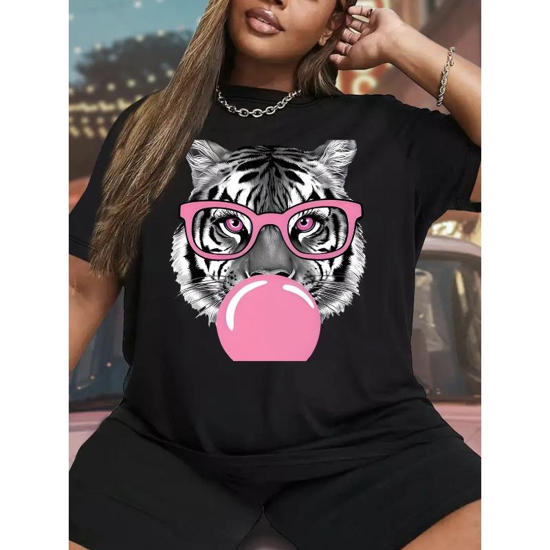 Europäische Größe Übergröße, Damenbekleidung Curve T-Shirts mit Aufdruck, Lässiges kurzärmeliges Rundhals-Oberteil, Bequeme Passform für alle Jahreszeiten, Damen-T-Shirt