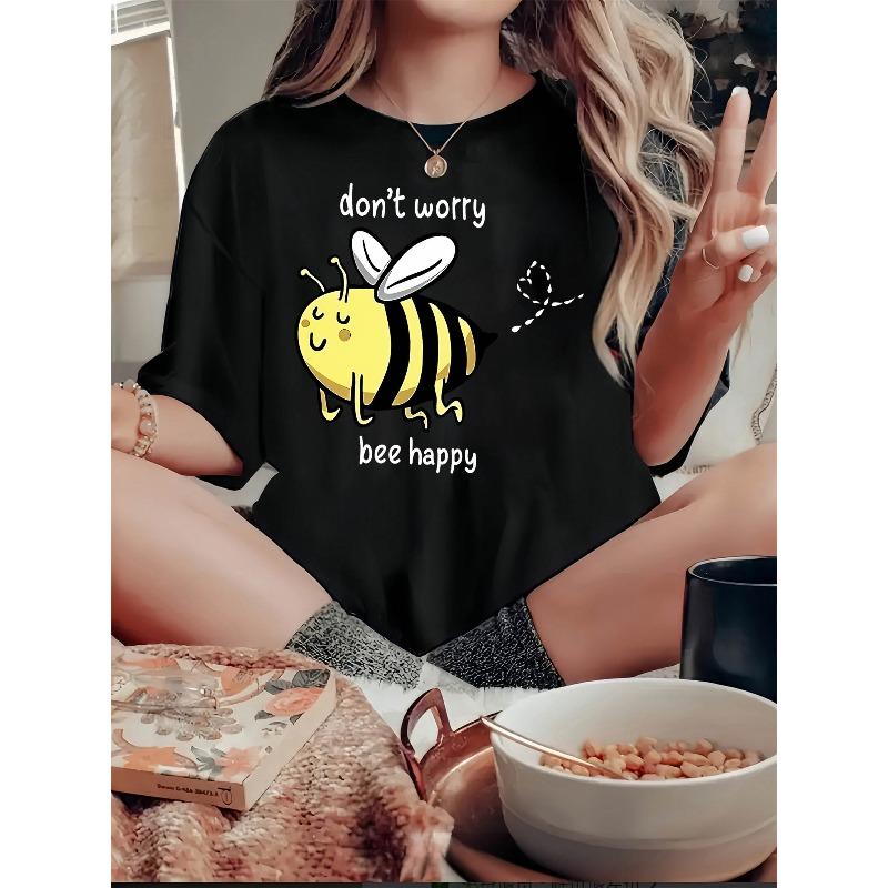 Women's Casual Bee Graphic Print T-Shirt Crew Neck Short Sleeve All-Season Top
