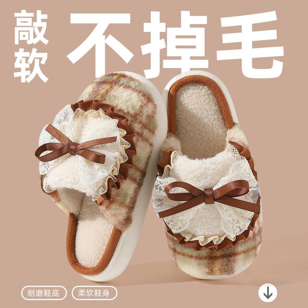 Bow cotton slippers autumn and winter new indoor home non-slip thick-bottomed bag head confinement slippers