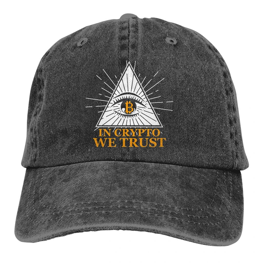 Washed Mens Baseball Cap In Crypto We Trust Eyes Trucker Snapback Caps Dad Hat Bitcoin Miners Meme Golf Hats