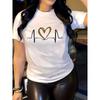 Europäische Größe Damen Herz Design Print T-Shirt Stilvoll Lässig Bequem Sportbekleidung