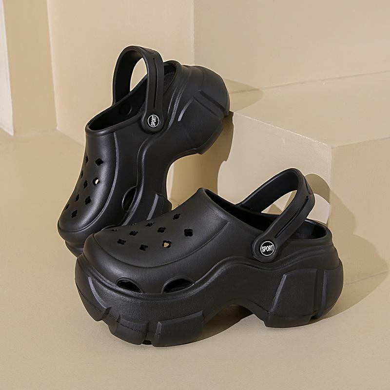 Einfarbige Hausschuhe Neue Sommer-Außenbekleidung dicke Sohle weiche Sohle höhenverstellende Loch-Hausschuhe