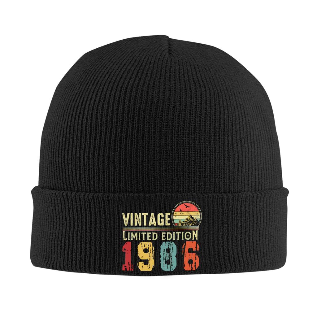 Born in 1986 vintage age 40 years old funny 40th birthday Rib Knit Cuffed Beanie For Unisex Warm Knitted Skull Cap