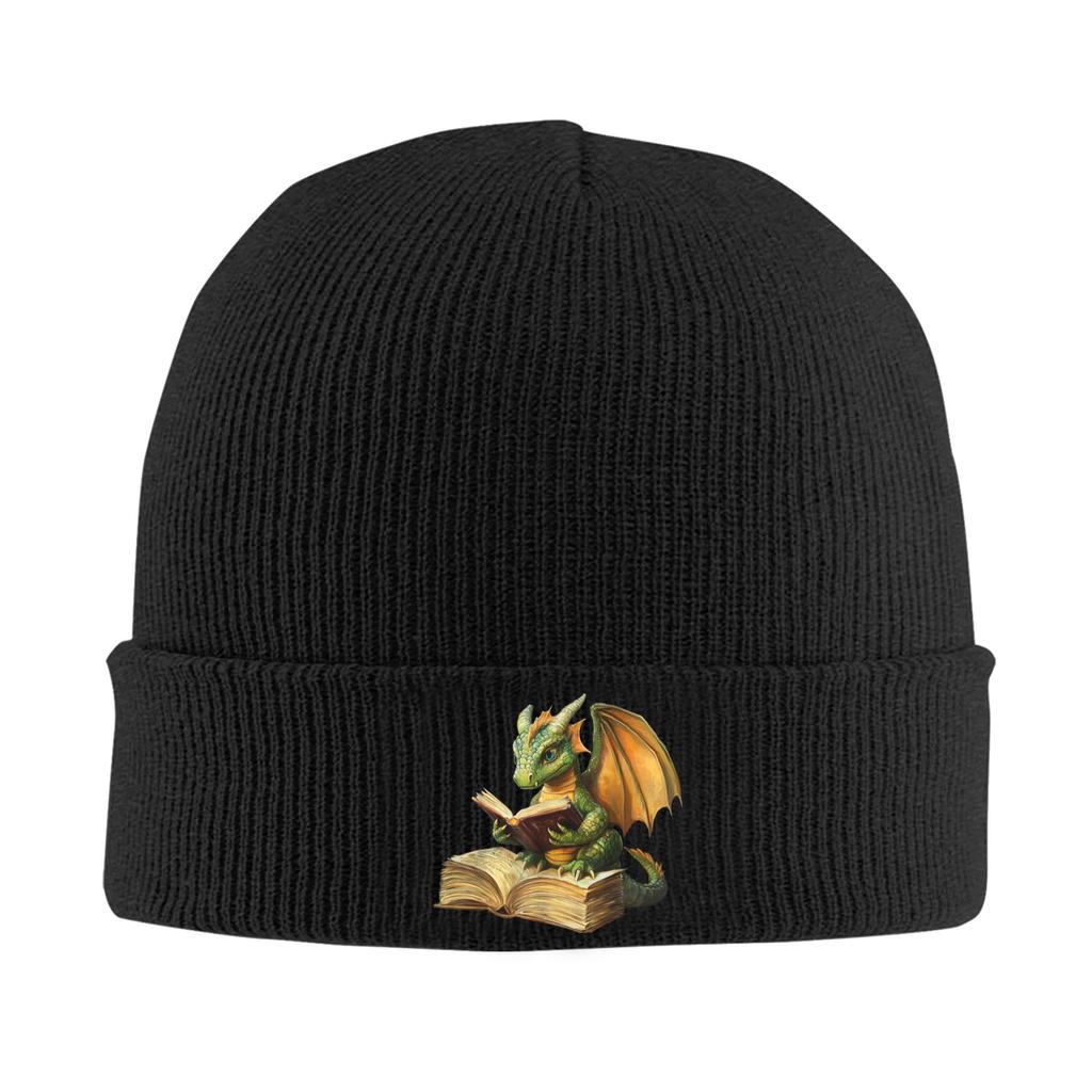 Dragon Bookworm Reading Book Funny Knitted Hat Beanie Hats Kpop Warm Soft Female Male Bonnet Hats Spring Custom Hip Hop Caps