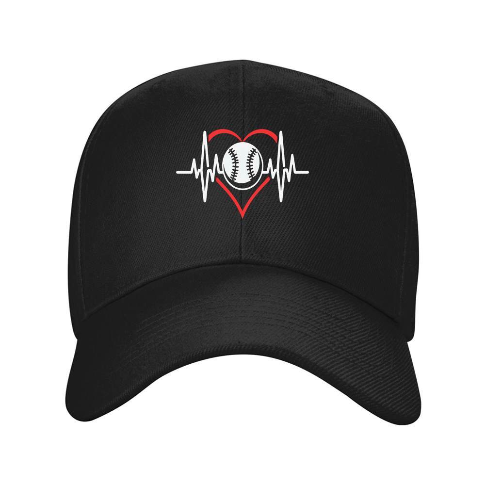 Baseball Heartbeat EKG Lifeline Black Baseball Cap Polyester Adjustable Sporty Hat for Adults