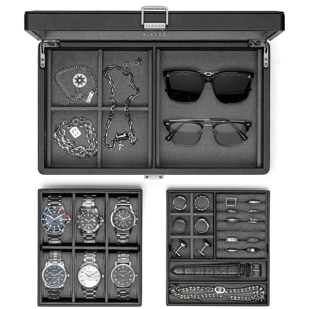 Vlando PU Uhrenetui zur Aufbewahrung Zubehör Geburtstagsgeschenk Männer, Box, Etui,