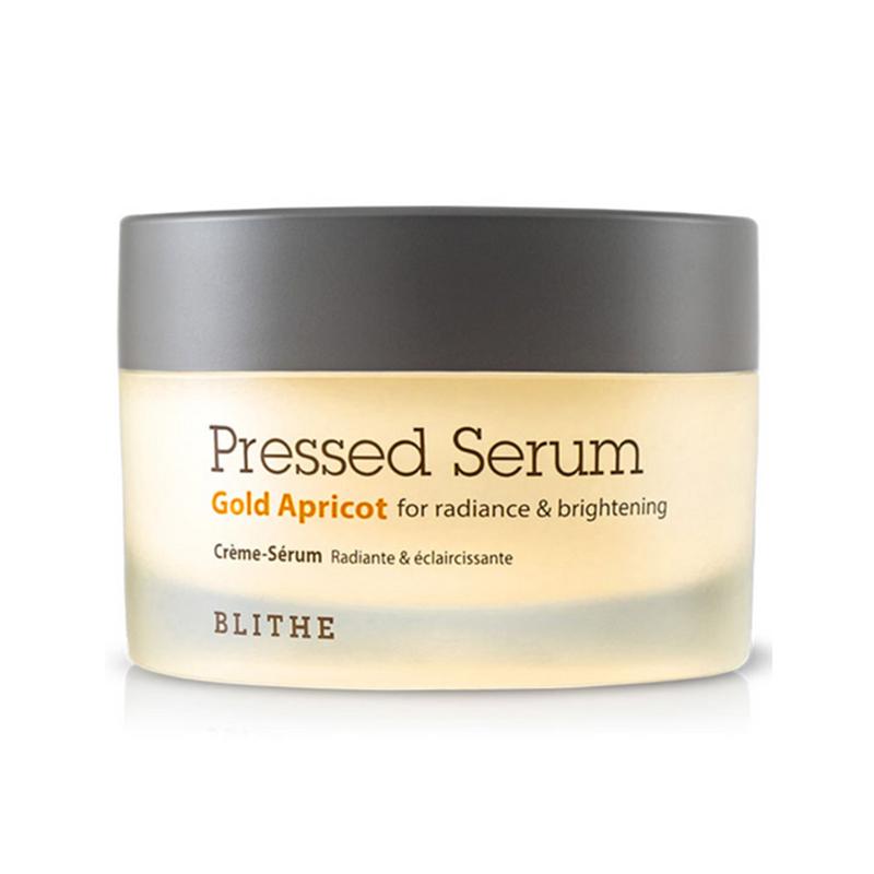 BLITHE pressed serum, gold apricot serum, brightening glow serum, Korean solid serum, moisturizing pressed serum, radiant skin care, apricot extract skincare, glow boosting serum, hydrating firming serum