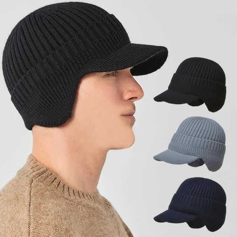 Men's winter knit hat with earflaps
