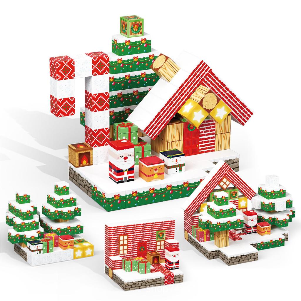 Christmas Theme Magnetic Blocks, Minecraft Style Magnetic Block Set, 2cm, Educational Toy for Elementary School Students, Birthday Gift, Preschool