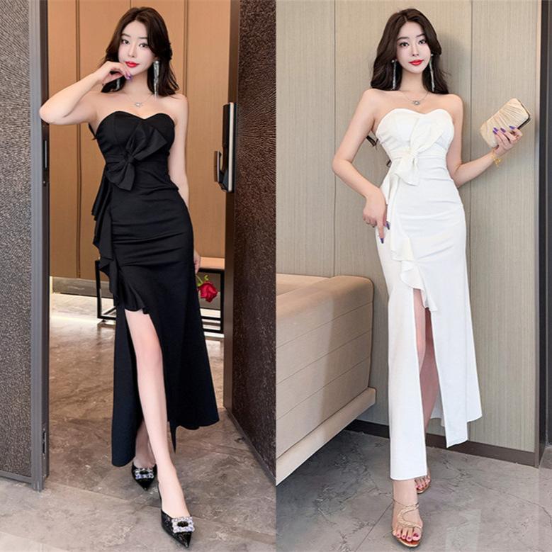 Summer new one-word sexy women's new tube top socialite banquet dress night total split fork long dress