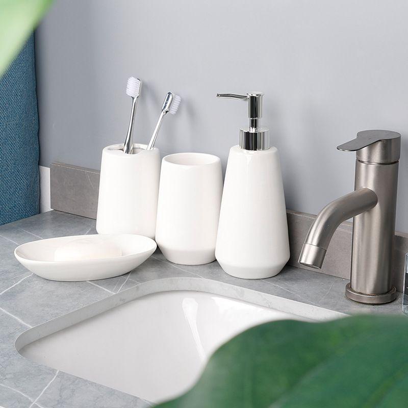Pure White Ceramic Lotion Bottle Toothbrush Holder Mouthwash Cup Soap Dish Bathroom Accessories Hotel Portable Dispensing Bottle