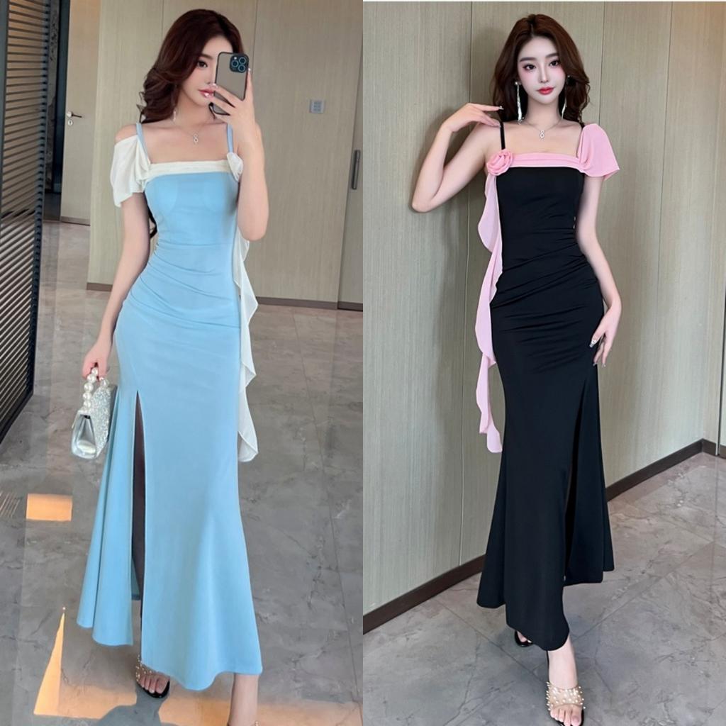 Sexy sauna pedicure overalls beauty evening dress long dress low chest thin summer