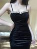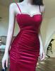 Heavy Industry Decorative Golden Velvet Suspender Dress Sexy Elegant Slim Slimming Evening Dress Long Dress