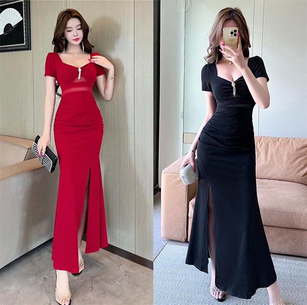 Celebrity evening dress split-ended long dress low-cut sexy dress advanced sense slim and thin
