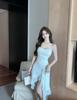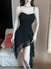 Sexy Netzblumen-Patchwork unregelmäßiges Designgefühl kleines schickes Nischen-Basiskleid Hosenträgerkleid mit Hüftumhüllung