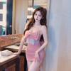 Autumn and winter new sexy lace splicing cotton bow decorative suspender pleated tight hip wrap short skirt women