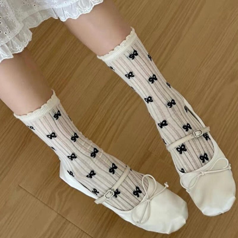 Phihiri See-Through Dot Frill Ribbon Daily Long Socks