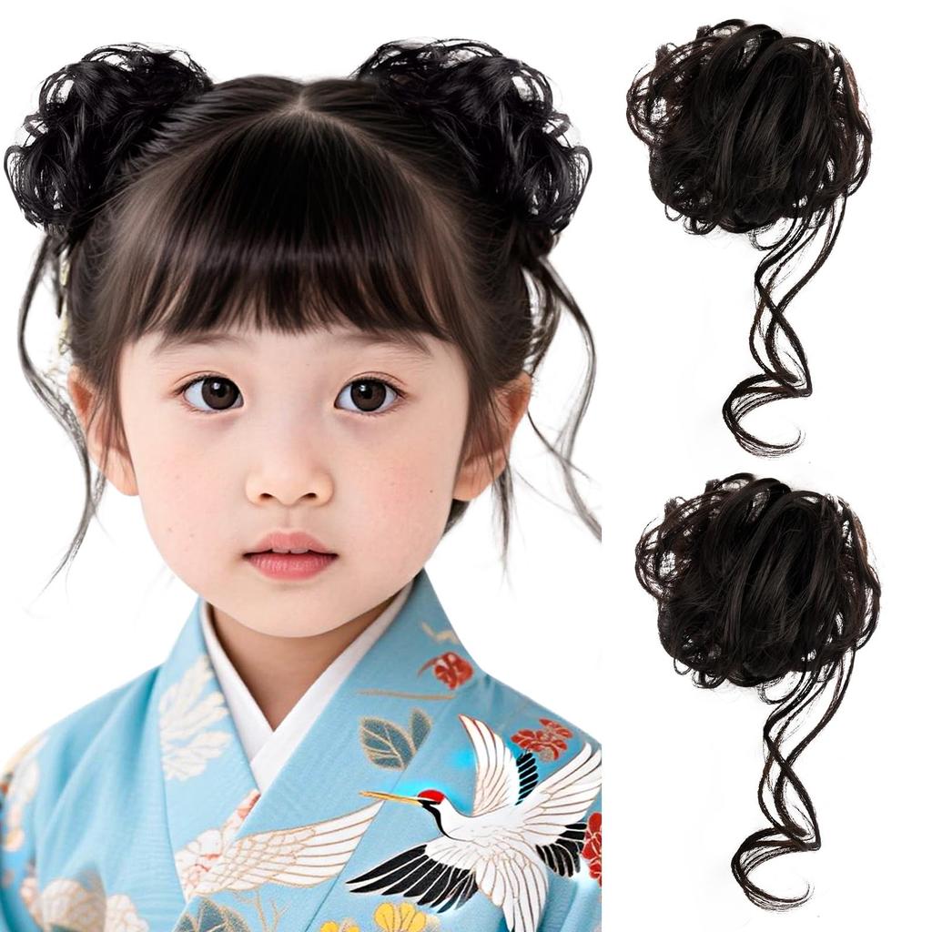 OTAKUMARKET Zweiteiliges Dutt-Perücken-Set mit Locken und Scrunchie-Stil, Perfekt für Shichi-Go-San, Yukata, Volljährigkeitszeremonien, Abschlussfeiern und