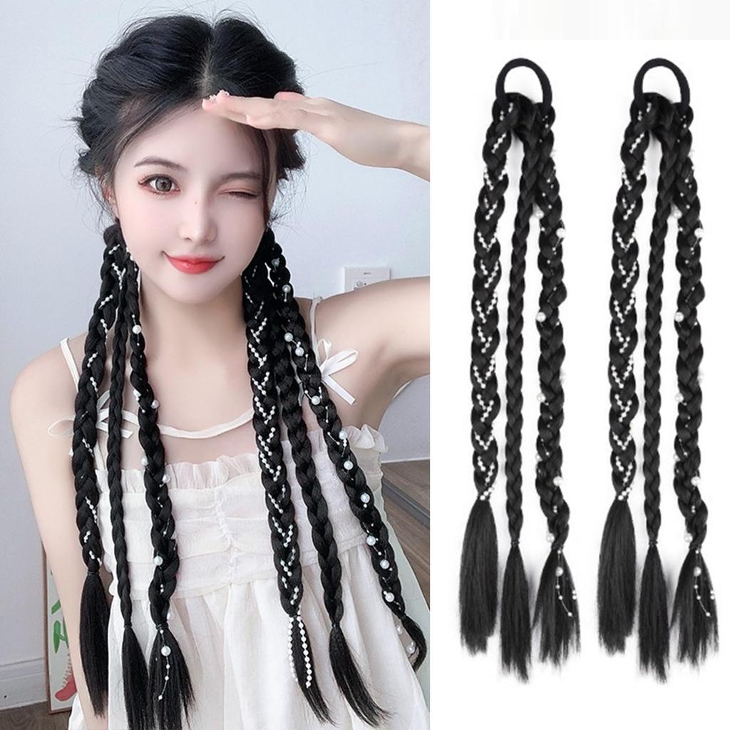 NOELAMOUR Hair Extensions, Wig, Braids, Pigtails, Kids' Hair Extensions (Black)