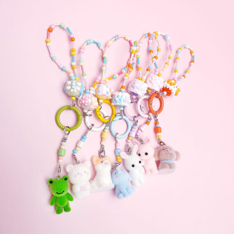 Beflockter Haustier Schlüsselanhänger Karabiner Perlenband Schlüsselhalter