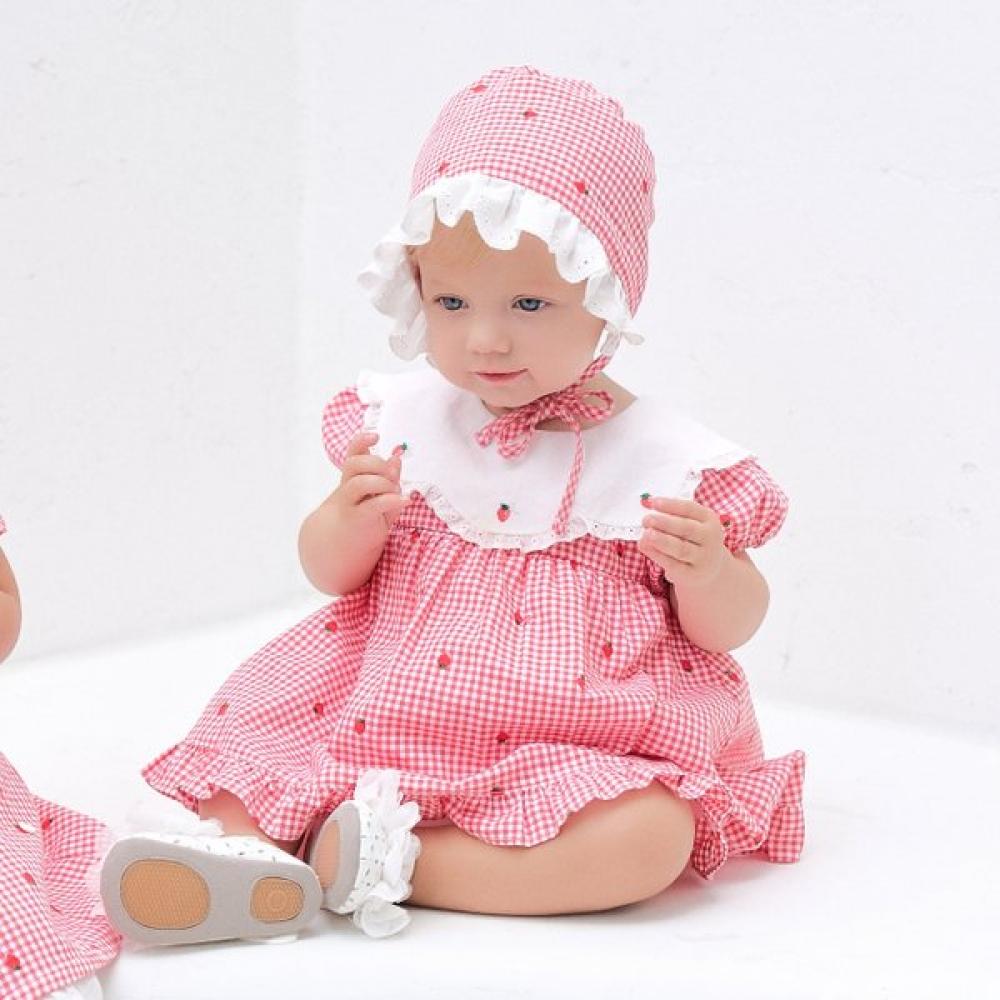 The (26 Summer New Product) Jamie Strawberry Bodysuit SET (07T3 27995) features an attractive strawberry pattern designed for infants. This product is suitable as indoor wear and for outings, highlighting breathability and comfort for the summer season. It features a crossover neckline and snap buttons for easy dressing, with snap buttons also located on the leg area for convenient diaper changes.