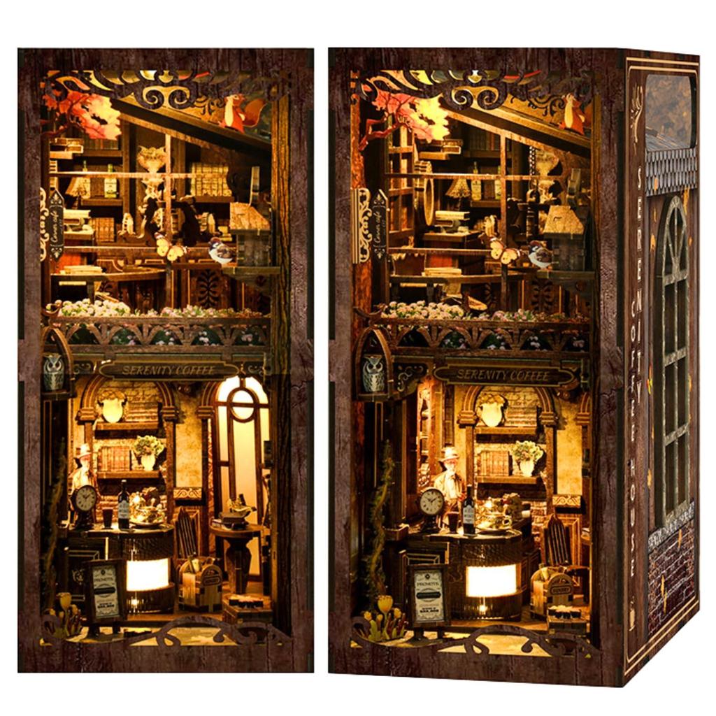 [Verwandle eine andere Welt in dein Bücherregal] Der Book Nook passt perfekt in die Lücken deines Bücherregals und lässt mit seinen präzise gefertigten Miniaturfiguren und LED-Lichtern Szenen aus einer anderen Welt wieder aufleben.. Tagsüber ist es ein Akzent für Ihr Bücherregal, und nachts verwandelt sein sanftes Licht es in einen fantastischen Kunstraum.. Allein durch das Aufstellen verwandelt es eine Ecke Ihres Alltags in einen besonderen Raum, und Sie werden jedes Mal, wenn Sie es ansehen, die Begeisterung genießen.