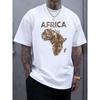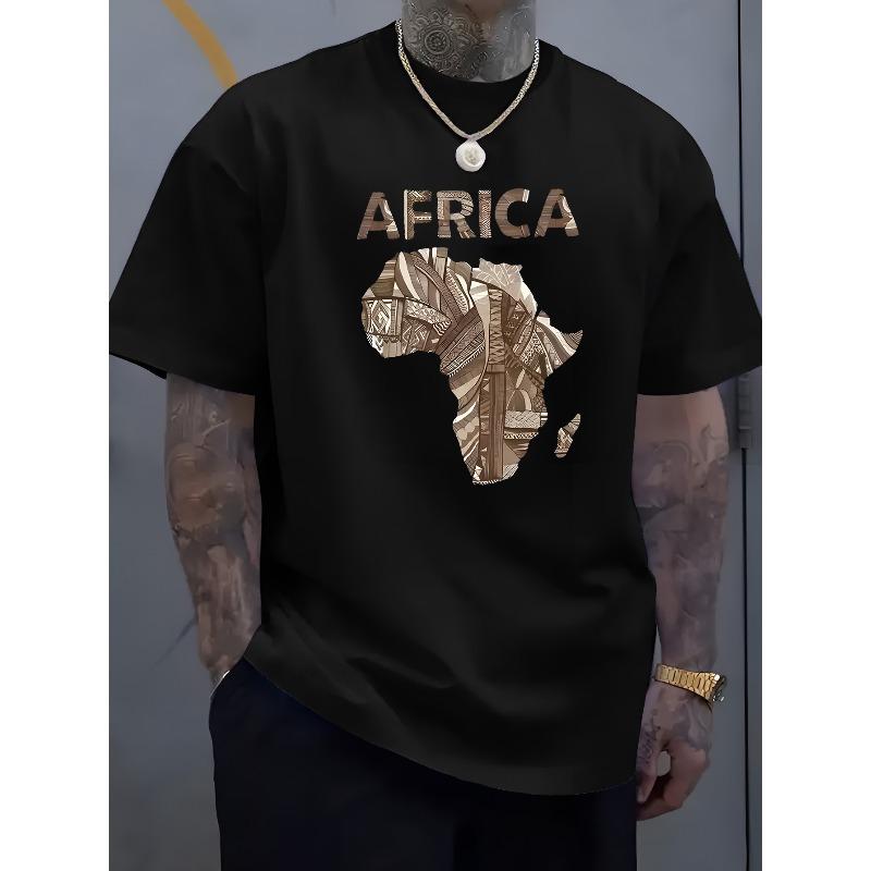 Europäische Größen Herren Freizeit Rundhals T-Shirt mit Afrika-Karte & Buchstabendruck, Weicher atmungsaktiver Stoff, Sommer Streetwear Stil