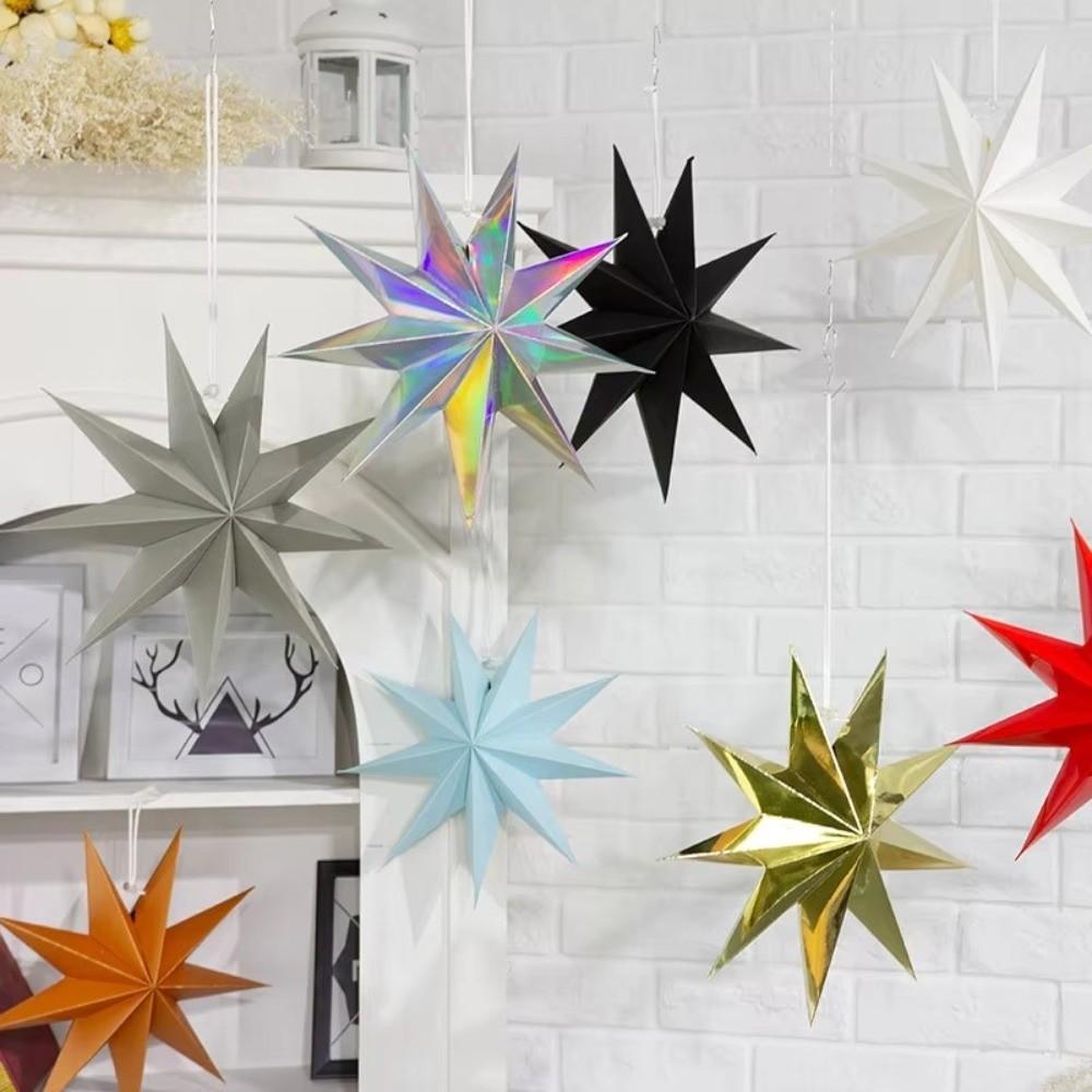 New 30cm Star Lanterns 9-Pointed Folding Hanging Paper Stars DIY Crafts Xmas Ornament Kids Birthday Party