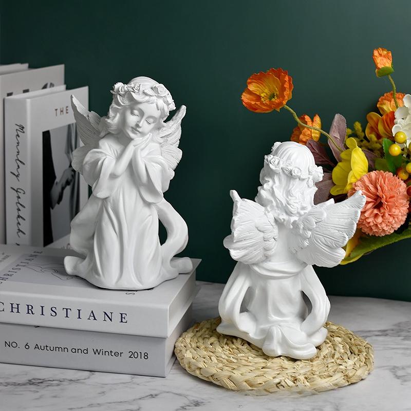 European Vintage Resin Angel Statue Fairy Garden Sculpture for Home Desk Shelf Decor Romantic Gift Collection