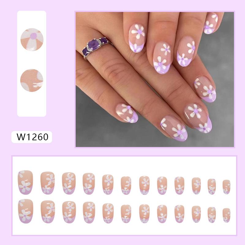 Oval taro purple French European and American ins wind fake nails cute sweet flowers wear armor
