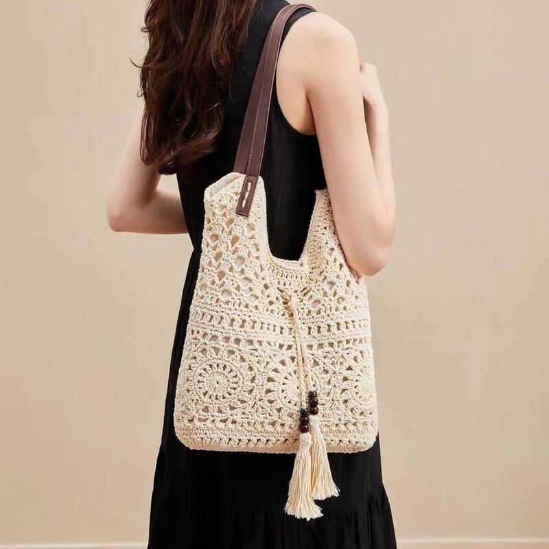 REWELL Sommer Quaste Baumwollstrick Schultertasche