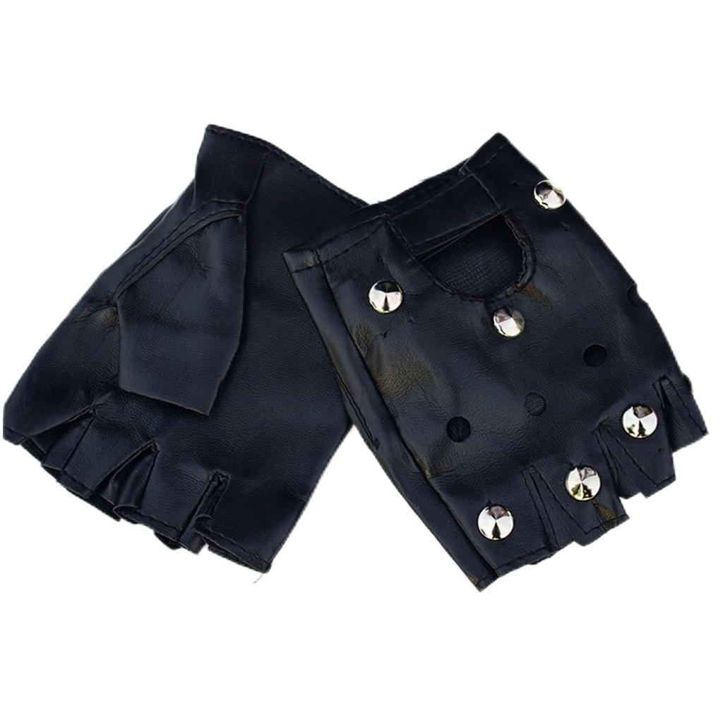 JooBsoso Fingerlose Handschuhe, Lederhandschuhe mit Nieten, Halbfinger, Fingerlos, PU-Leder, Einheitsgröße für die meisten Hände, Schwarz mit Nieten, Perfekt für Tanz,