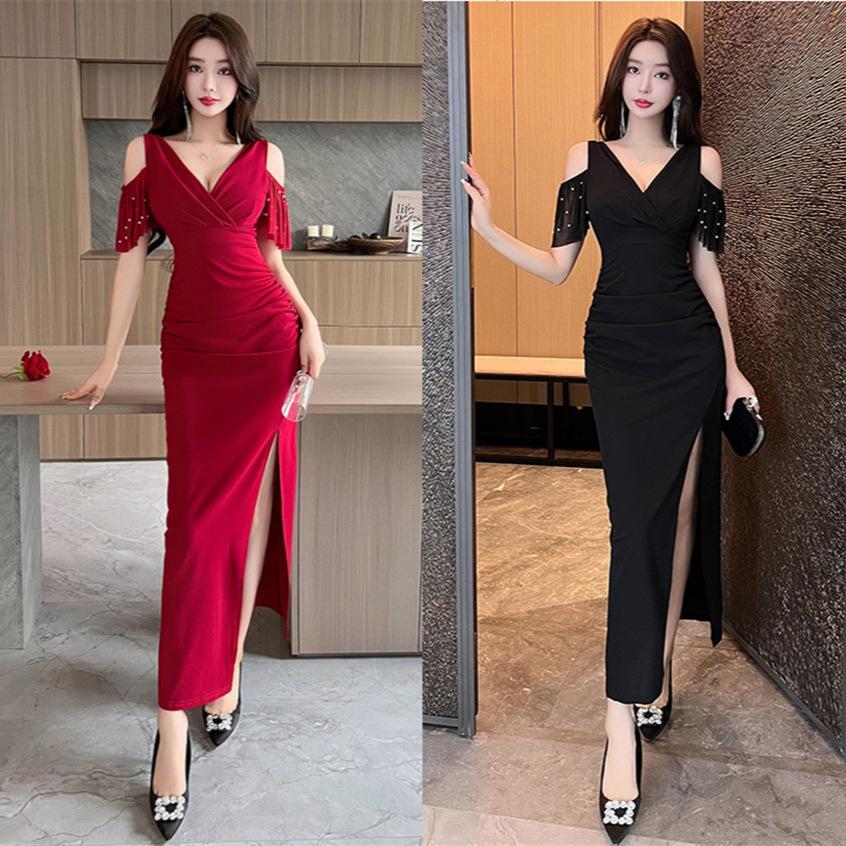 Summer body night main store sexy dress low-cut off-the-shoulder mesh temperament tight back and thin hip-wrapped dress