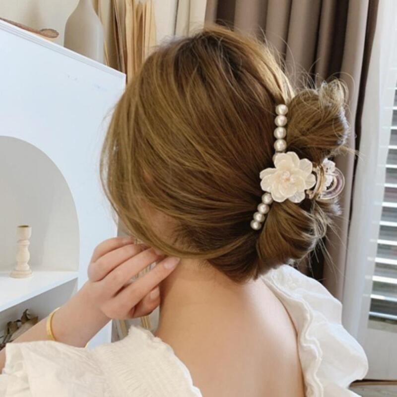 Romantische Haarspange mit Blumen- und Perlenverzierung für Damen