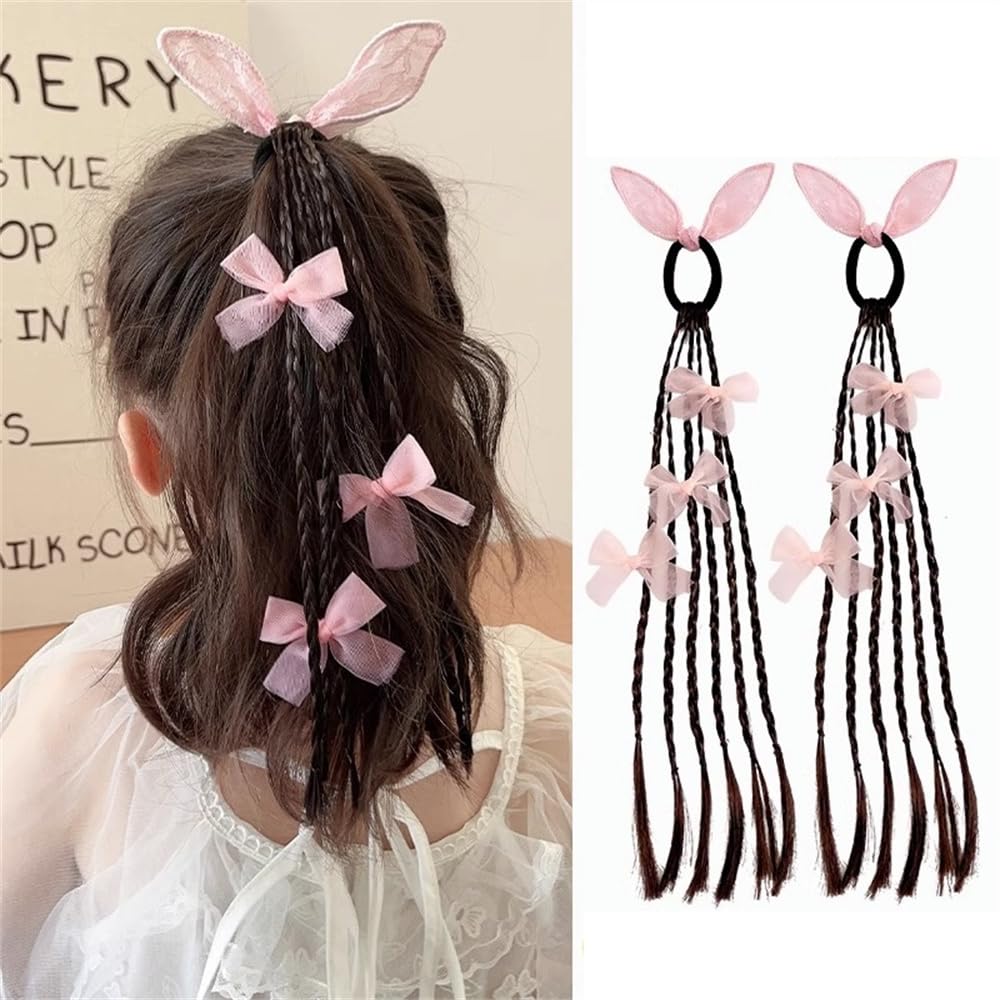 SITEDAN Kinder Haarverlängerungen, Geflochtene Perücke mit Band, für Mädchen, Pferdeschwänze, Zöpfe, Geflochtene Haarverlängerungen, Kostüme, Kinderveranstaltungen (Rosa)