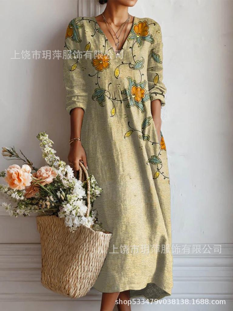 Umarme frischen saisonalen Stil mit diesem eleganten langen Kleid, das sowohl für Frühling als auch für Herbst entworfen wurde.. Hergestellt aus hochwertigem Polyester, verfügt es über einen fesselnden 3D-Druck, der Ihrem Look Tiefe und Lebendigkeit verleiht.. Dieses Kleid vereint mühelos Komfort und Mode und ist somit eine ideale Wahl für jeden lässigen Ausflug oder besonderen Anlass.. Die fließende Silhouette und das leichte Material sorgen für Bewegungsfreiheit und halten Sie den ganzen Tag über bequem und schick.