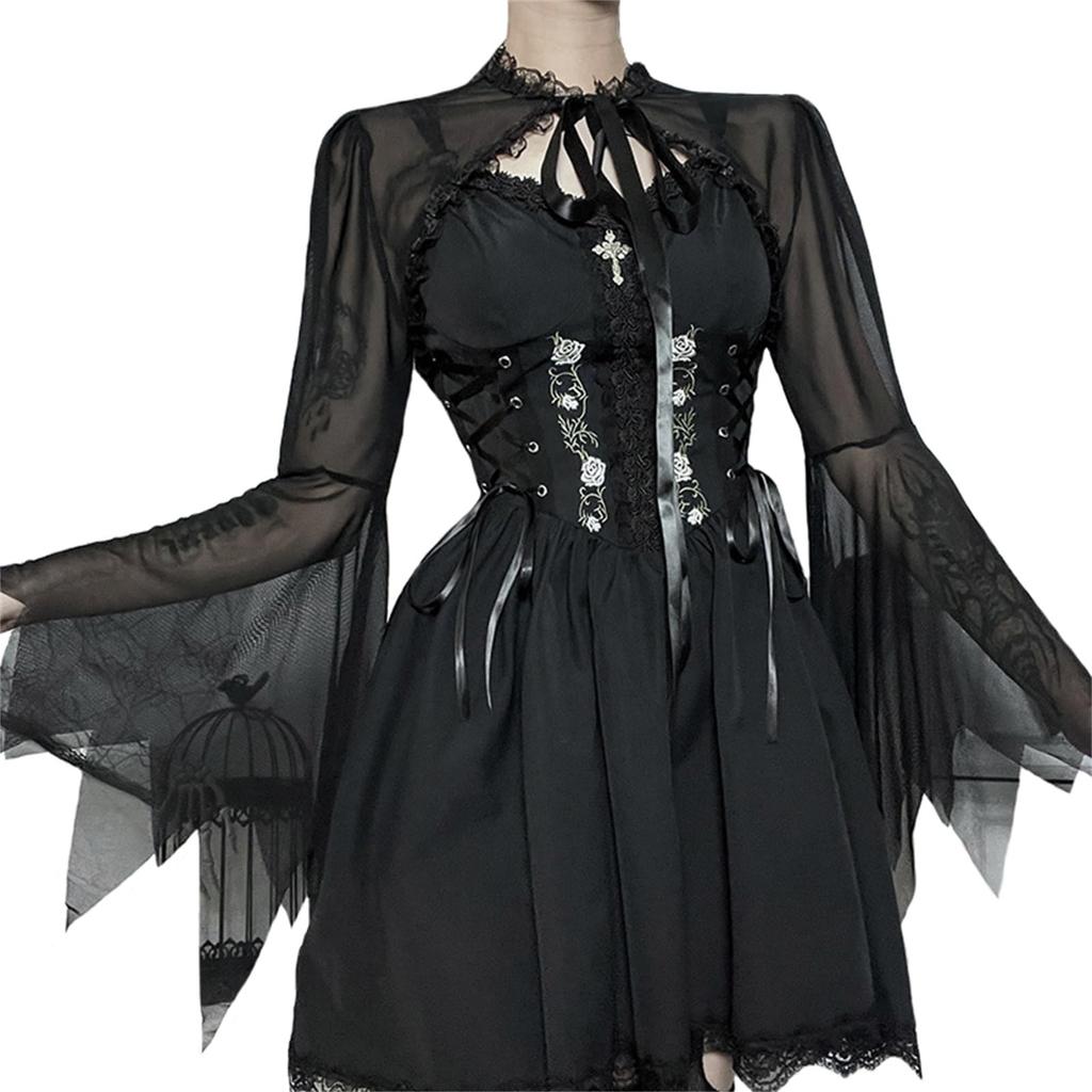 QOOLY Cosplay Idol Gothic Schwarz Mini Sexy Gothic Lolita Niedlich Lolita Lolita Prinzessin Punk Party Live-Performance Größe S Einteiler Kostüm, Kleid,