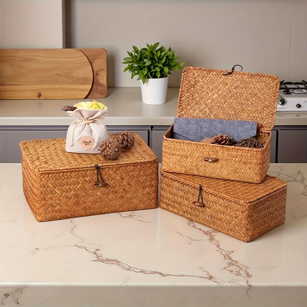 Vintage Handgewebter Aufbewahrungskorb, Geschenk-Aufbewahrungsbox, Schreibtisch-Kleinteile-Aufbewahrungsbox, Aufbewahrungskorb mit Schnalle und Deckel