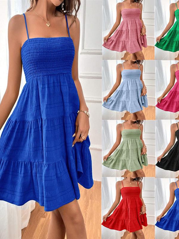 2024 Women's One-Shoulder Textured Summer Dress with Thin Straps – European & American Style